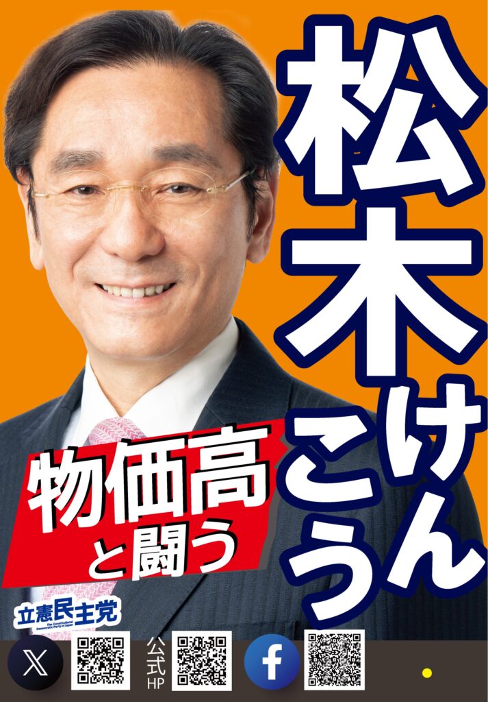 各報道機関(朝日毎日NHK日テレ読売)のアンケート回答を分析すると、松木氏は立憲民主党の理念を体現するリベラル・護憲の立場を鮮明にしています。かつては保守陣営に身を置いていた経歴を持ちますが、現在は「自民党政治への徹底的な対抗軸」として政権主導の政策には断固として「NO」を貫く姿勢が際立ちます。社会政策においては、「個人の尊厳と多様性」を重視する現代的なリベラル像を確立しています。また、経済面ではインボイス制度の廃止や最低賃金1,500円への引き上げを掲げ、大企業優遇を是正し、物価高に苦しむ庶民の懐を直接温める「生活者起点のボトムアップ政治(家計支援)」を強力に推し進めています。